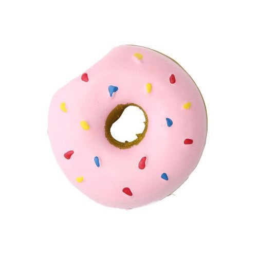 ワンちゃんが噛んだり押したりすると プーピー音が鳴るドーナツ型おもちゃ です。
