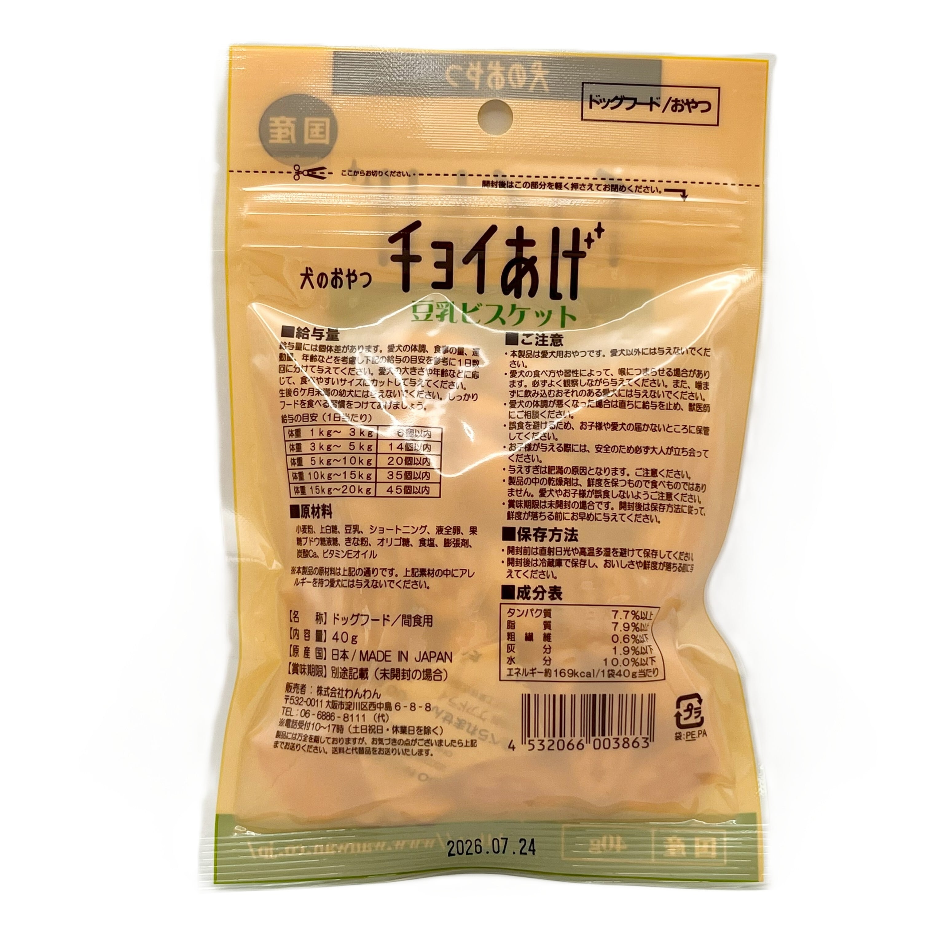 国産の豆乳ビスケットをこれでもか!という程、パンパンに詰めています。