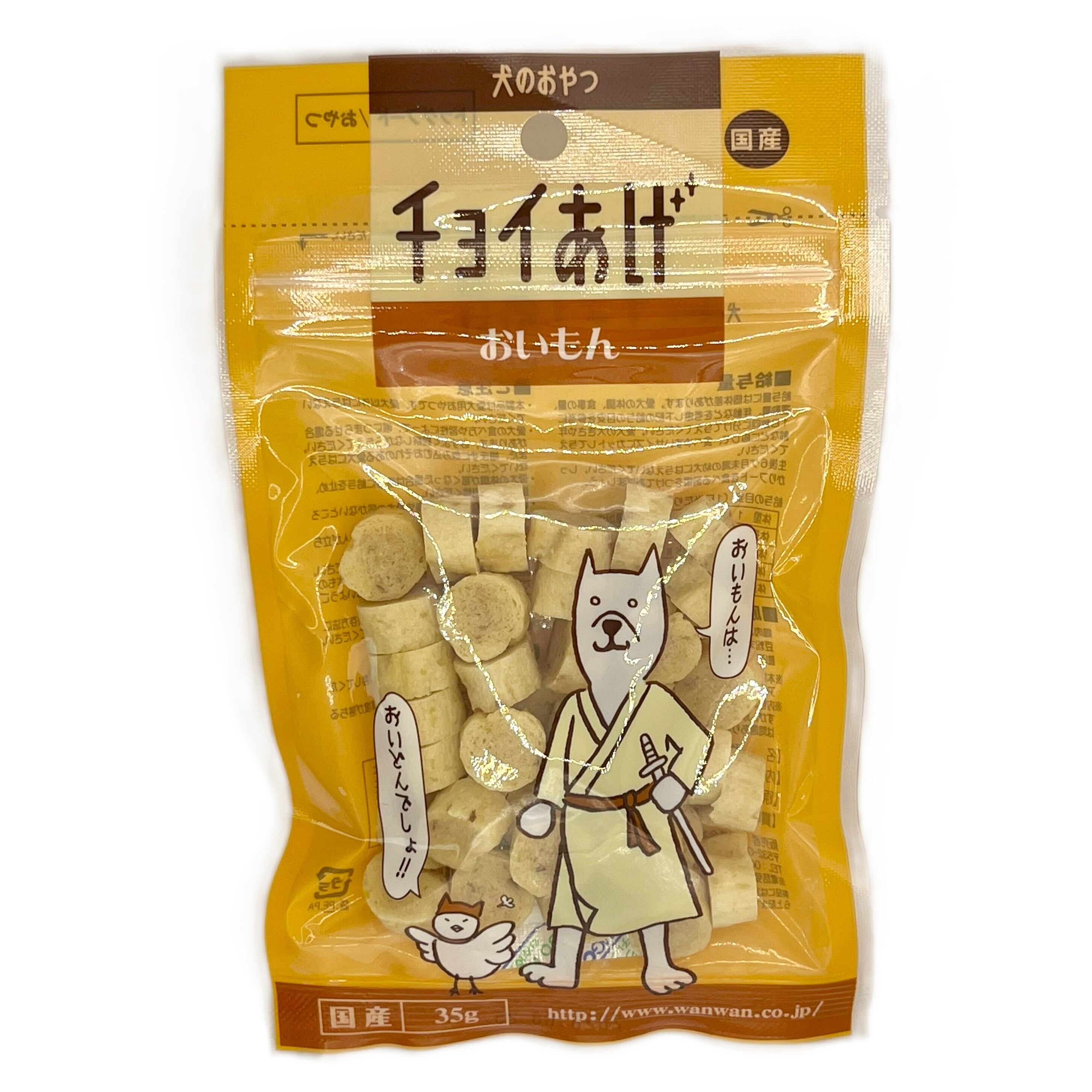鶏肉、さつまいも(皮 含む)、小麦粉、脱脂大豆粉末、砂糖、でん粉類、ソルビトール、膨張剤、プロピレングリコール、ポリリン酸Na
